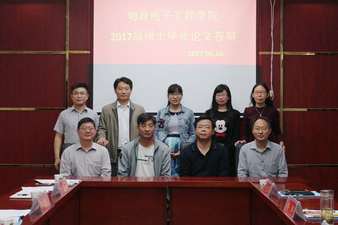 6月6日,我院在物理楼南楼501会议室举行2017届专业学位和学术型硕士研究生毕业论文第三批答辩会。本次答辩委员会主席是信阳市高级中学高级教师左刚武,委员有信阳市基础教研室高级教师杨辉、我院陈新武教授、冯一兵副教授、仓玉萍博士、龚克博士、刘墨林博士。