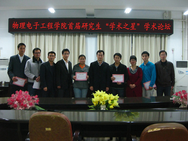 论坛中研究生采用多媒体课件的形式汇报自己的科研成果、学术思想观点及学科前沿问题。参与研究生根据自己所属年级的不同采用不同的汇报形式。高年级研究生则汇报自己在学术科研方面所取得的成绩,或者是自己正在开展的工作。其中有鲁军旺的“IR Modified Horava Gravity”,雷前涛的“高能聚焦质子束无掩膜刻写实验与方法研究”,董宝平的“几类稀土六硼化物纳米材料的制备与性能研究”。低年级研究生则汇报自己的学习心得,或者是切身阅读过的学术文献。其中有侯广华的“金属六硼化物纳米材料的制备与表征”,张德扬的“PSO粒子群优化算法”。在每位学生陈述完毕后,评委组老师及时给予点评,对于表现优秀的地方给予表扬,对于不足之处给予指正,同时也对研究生课件中形式上的错误给予纠正。活动结尾,副院长罗永松肯定了研究生们的优异表现,希望各位研究生今后的学习能够取长补短取得更好的成绩,并进一步强调今后此类活动的开展将常态化。