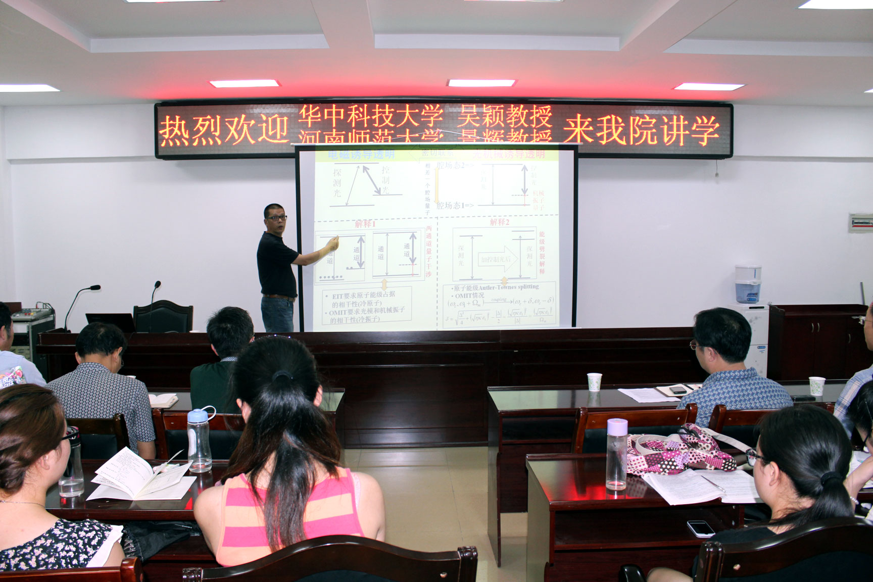 应我院邀请,6月21日,华中科技大学教授吴颖和河南师范大学教授景辉一行来我院讲学。吴颖教授在理科楼5楼报告厅作了题为“光机械系统非线性现象的研究”的学术报告,报告由我院院长罗永松主持,我院200名师生聆听了报告。