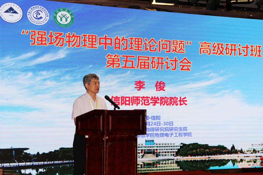 李俊在致辞中,首先向来自全国各地的专家学者表示热烈欢迎。他介绍了学校基本情况以及强场物理团队发展情况。他表示,会议在信阳召开,是各位专家学者对学校的信任和激励,也为师生提供了近距离感受强场物理盛会、接触学术大师的机会。学校将当好东道主,为会议提供好服务保障,希望与会专家对学校发展特别是物理学科建设多提宝贵建议。他指出,与会专家的深入研讨,能够达到交流学习、促进协作的目的,推动强场物理相关研究迈上新的台阶,为深入实施创新驱动发展战略、建设世界科技强国、实现高水平科技自立自强做出贡献。