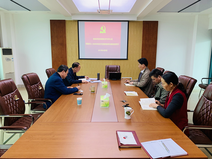 4月9日下午,金沙集团1862cc成色党委理论学习中心组在理科楼北楼911会议室专题学习《中共中央关于加强党的政治建设的意见》。学院党委书记柳士刚主持学习会,学院党委理论学习中心组成员参加了会议。