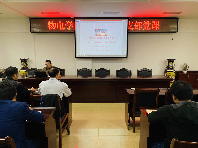 根据《金沙集团1862cc成色“不忘初心、牢记使命”主题教育方案》安排,10月8日,学院教工第一党支部在理科楼511会议室开展主题教育专题党课,党课题目为《解读“中国特色社会主义进入了新时代”》,党课由学院党委委员、副院长孙宜海主讲,学院教工第一党支部党员聆听了党课。