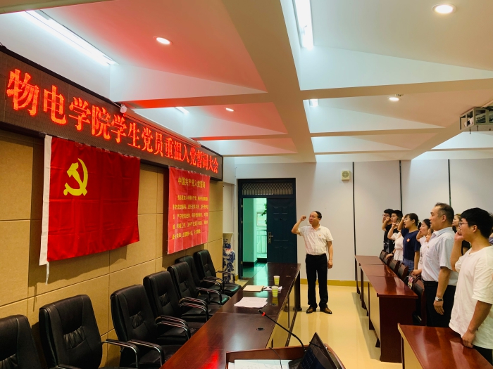 根据学校《关于在“七一”前夕广泛组织开展新党员入党宣誓和党员重温入党誓词活动的通知》要求,6月17日,学院学生党支部在理科楼四楼会议室开展重温入党誓词活动,学院五个学生党支部党员参加了活动,学院党委书记柳士刚、副书记李刚参加了活动。