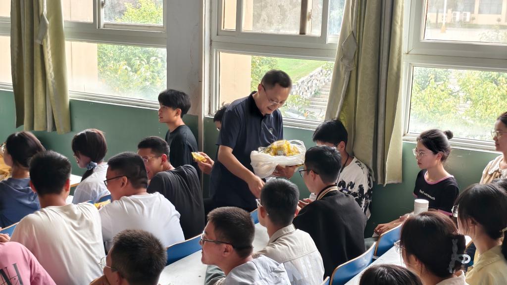 随后,方明科为2024级全体新生分发牛奶和月饼。这份特别的礼物不仅承载着学院对新生们踏入新旅程的深切关怀,更传递了学院对新生们的关怀与祝福。新生们手捧月饼,脸上洋溢着幸福的笑容,他们纷纷表示将不负韶华,努力学习,为学院争光、为学校争彩。
