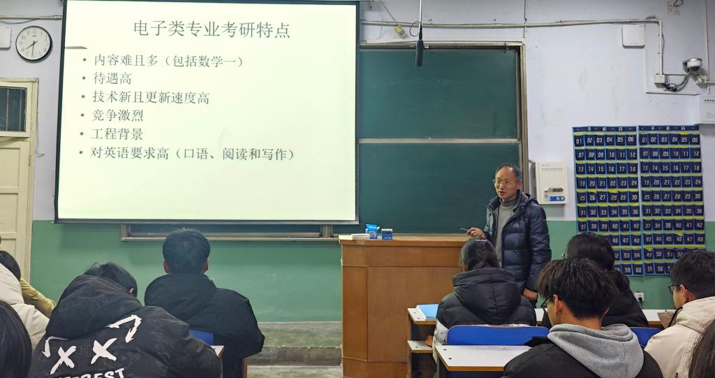为帮助2025届学生明确职业方向,搭建一个全方位、多层次的信息桥梁,提供备考策略。3月6日,我院于教二T4举办考研指导讲座,讲座由陈新武教授主讲,2021级电子信息工程班和电子科学与技术班学生积极参加。