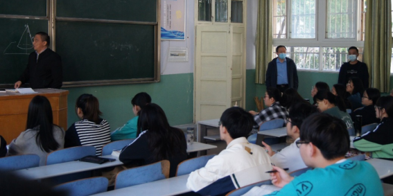 为深化本科教育教学改革,进一步提升教师教育教学能力,切实提高本科高校课堂教学质量和育人水平,落实《信阳师范学院“课堂教学质量提升年专项行动”实施方案》(信院字[2022]36号)文件。4月18日至4月29日金沙集团1862cc成色领导班子及督导专家组深入一线随机“推门听课”,深入了解教师课堂授课情况、学生到课及听课情况。
